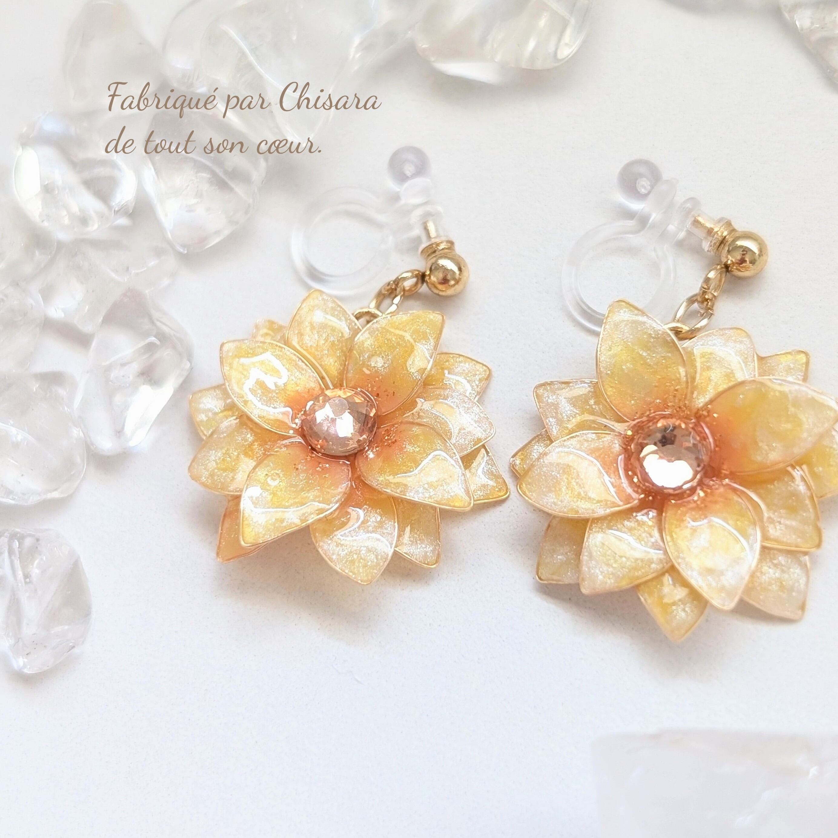 お耳に挟んでお付け頂けるイヤリングでございます。