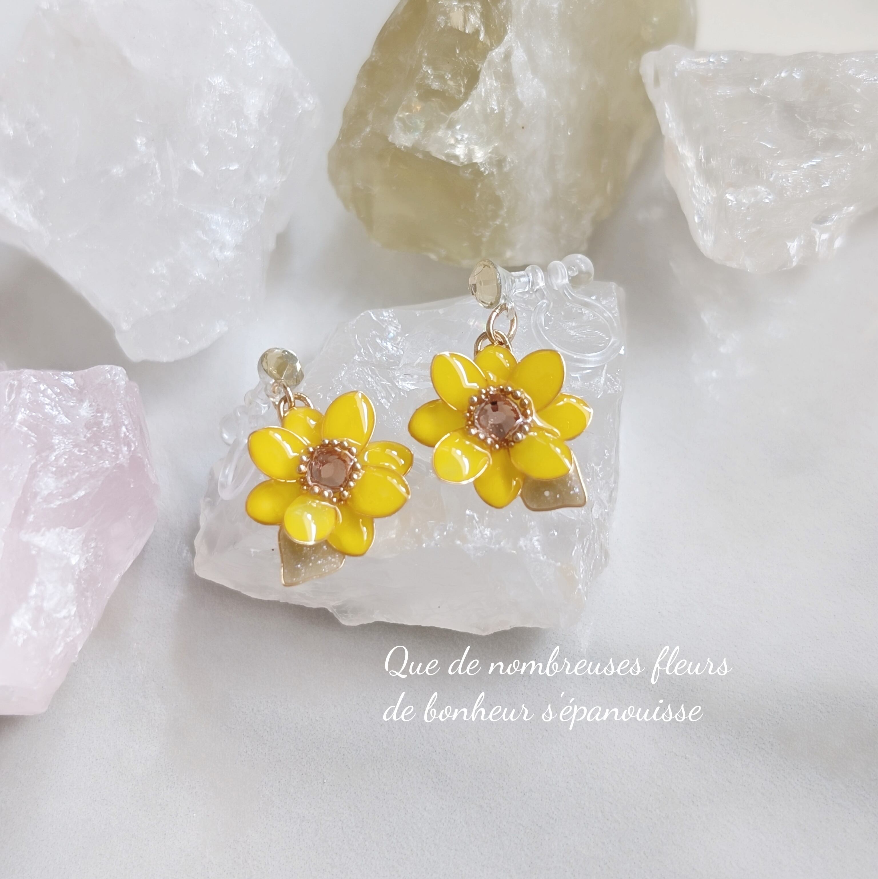 【完売いたしました】Petitひまわり✿揺れるノンホールピアス //パーツ変更可