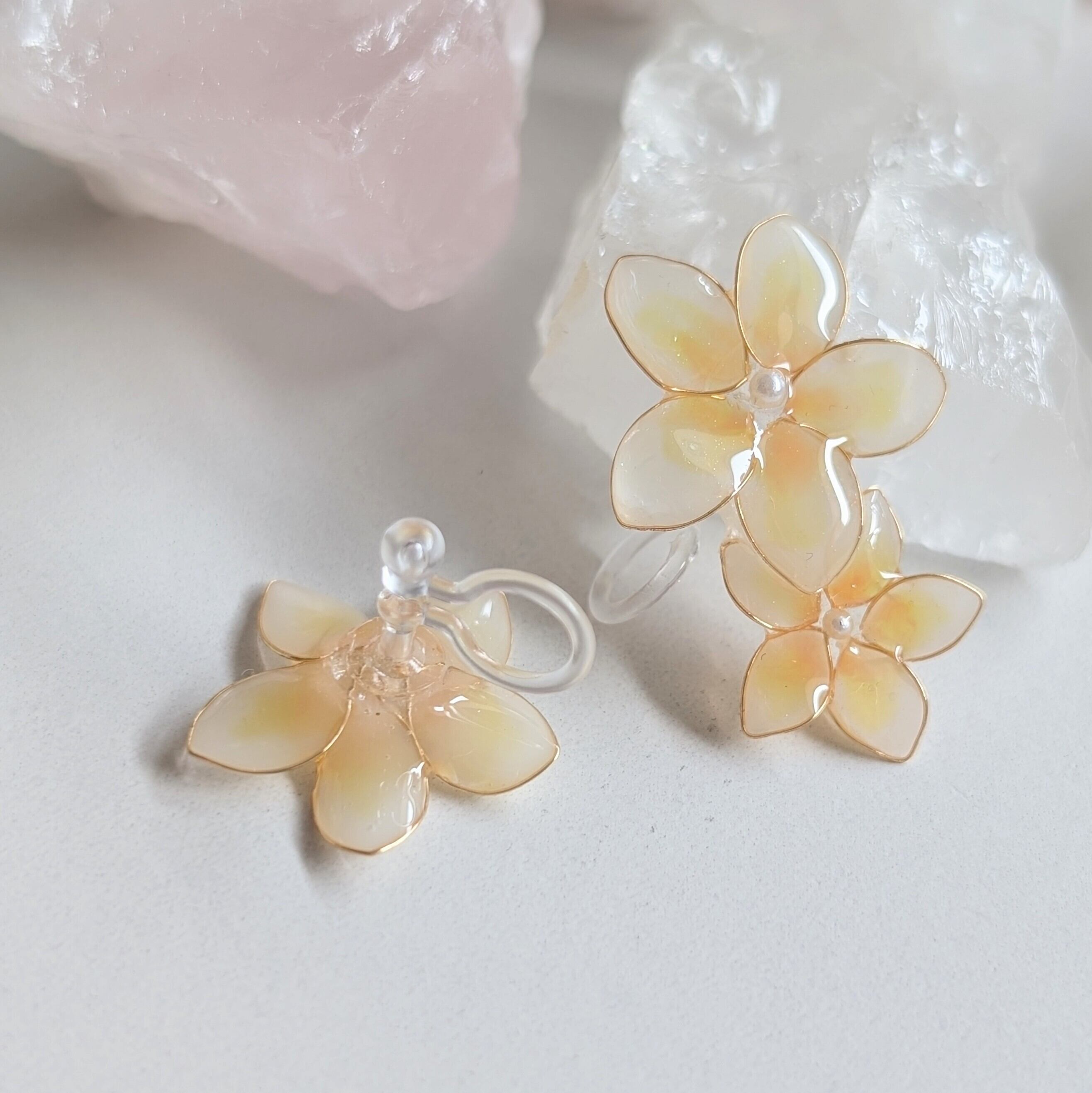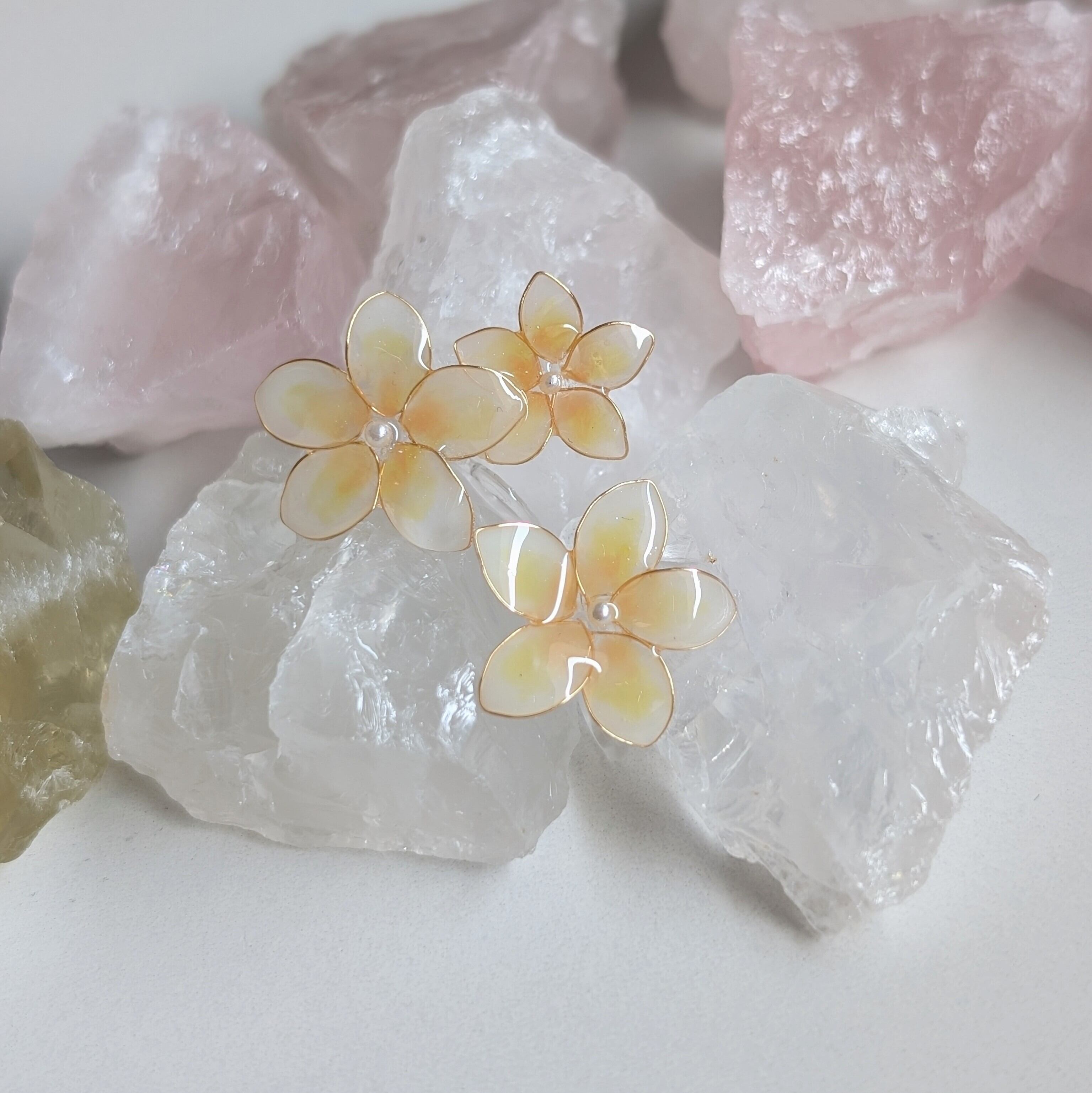 そんな可憐なプルメリアをアシンメトリーのノンホールピアスにいたしました。