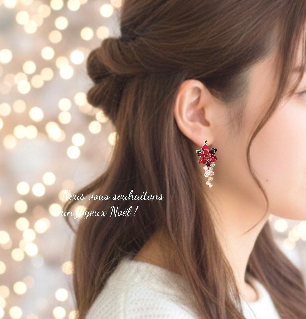 【完売いたしました】スノードロップ✧ポインセチア✿ノンホールピアス //パーツ変更可 210