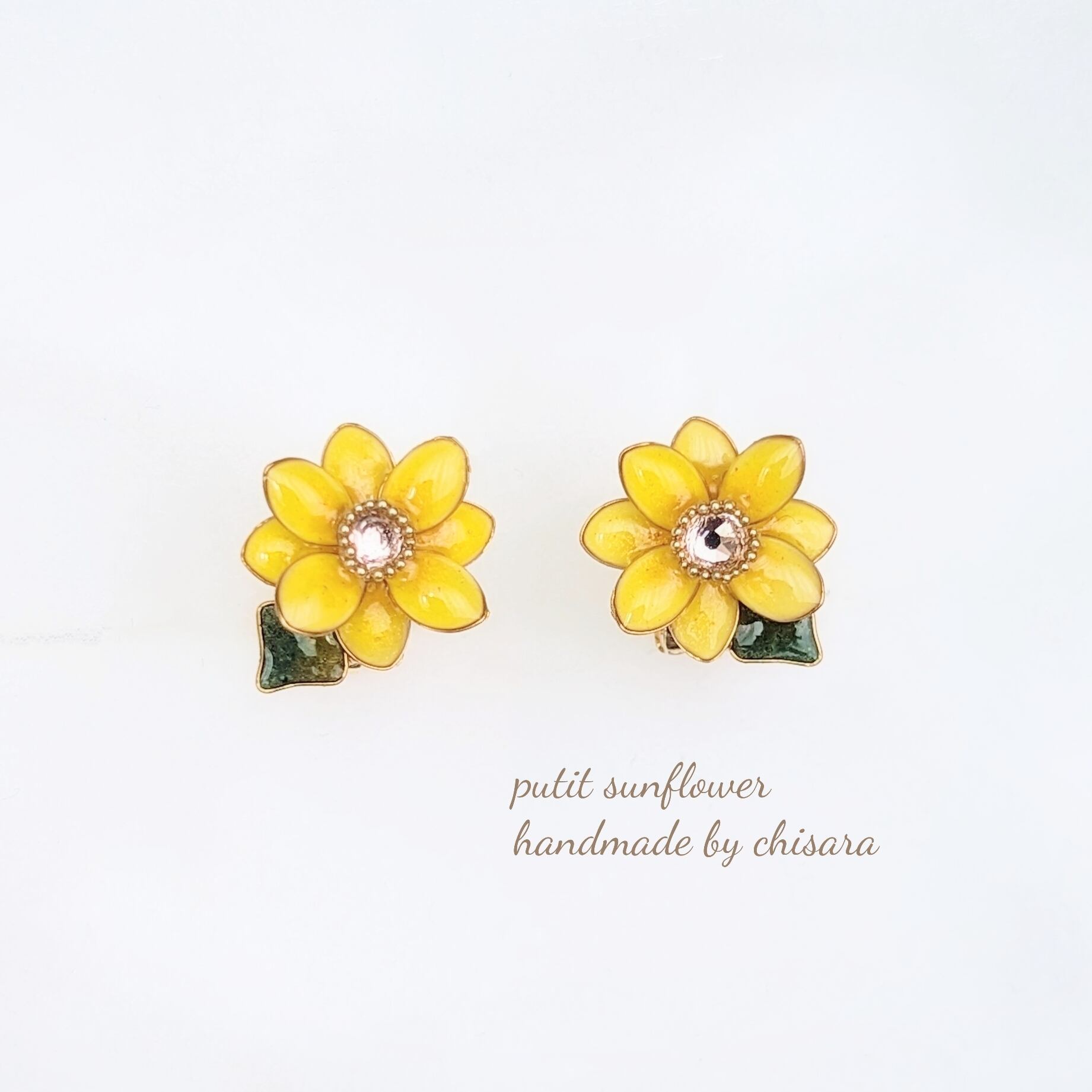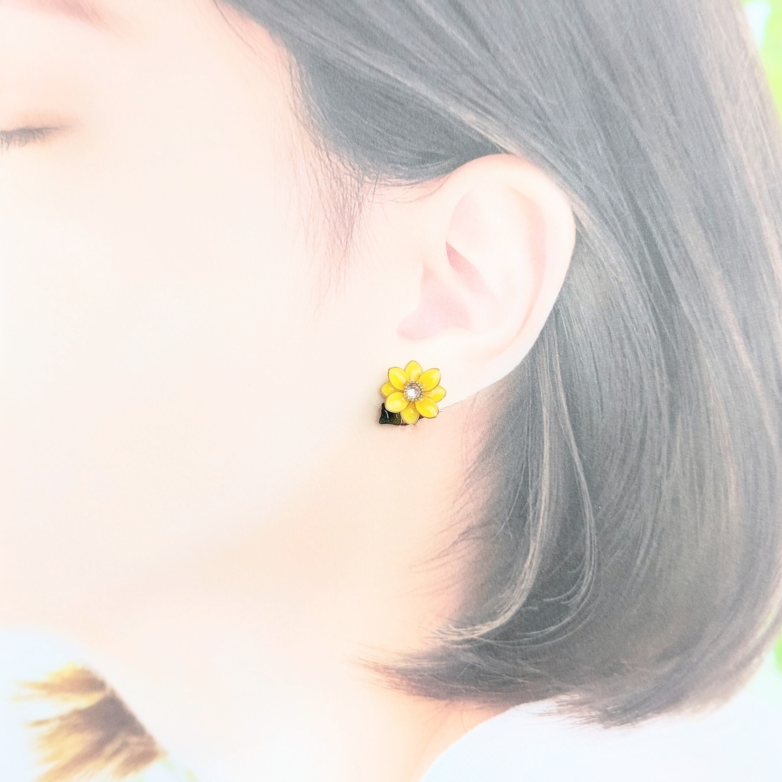 とても小さなひまわりのノンホールピアスです❀