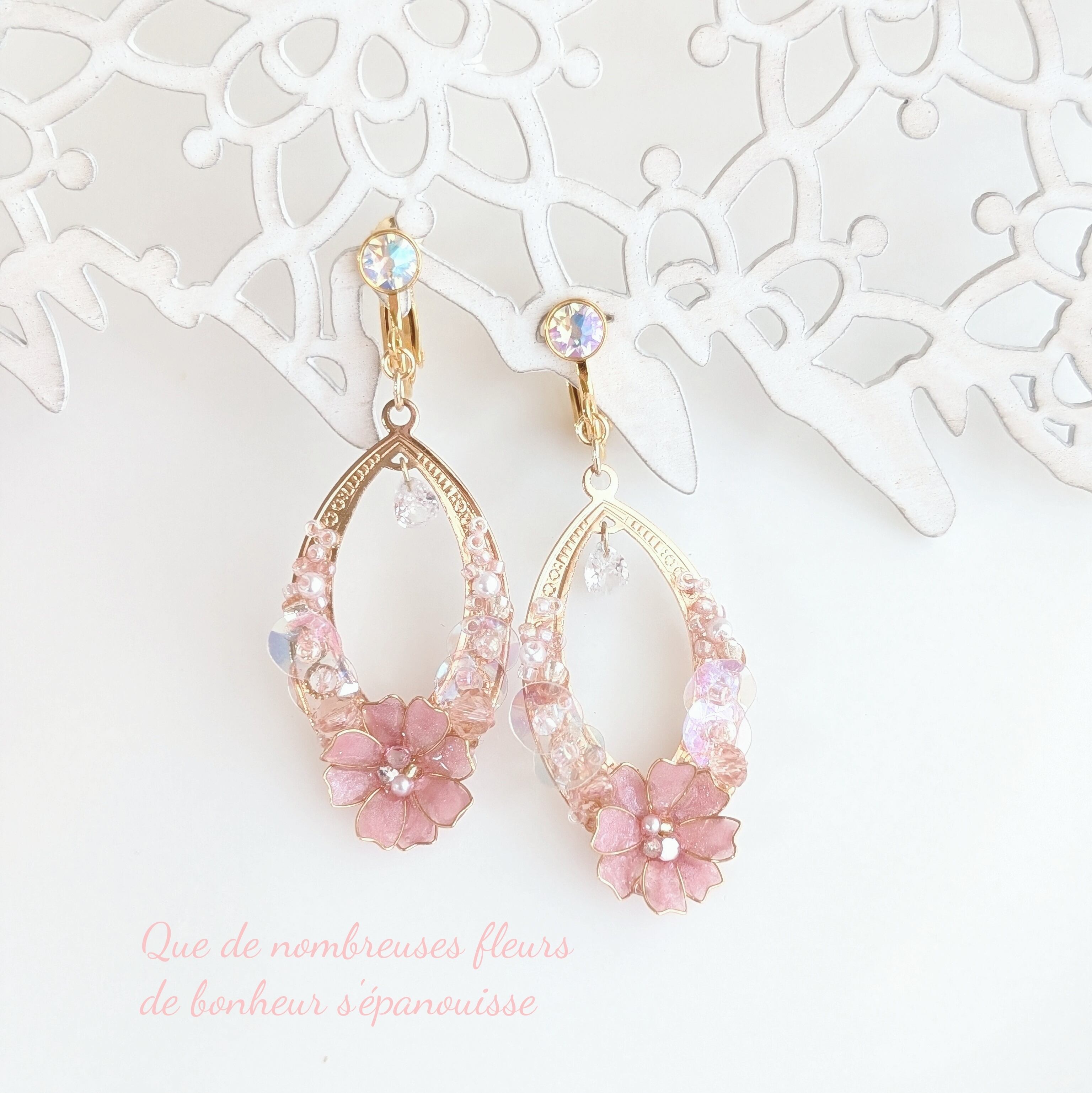 【完売いたしました】「秋桜とスパングル」ネジバネ式イヤリング//パーツ変更可能