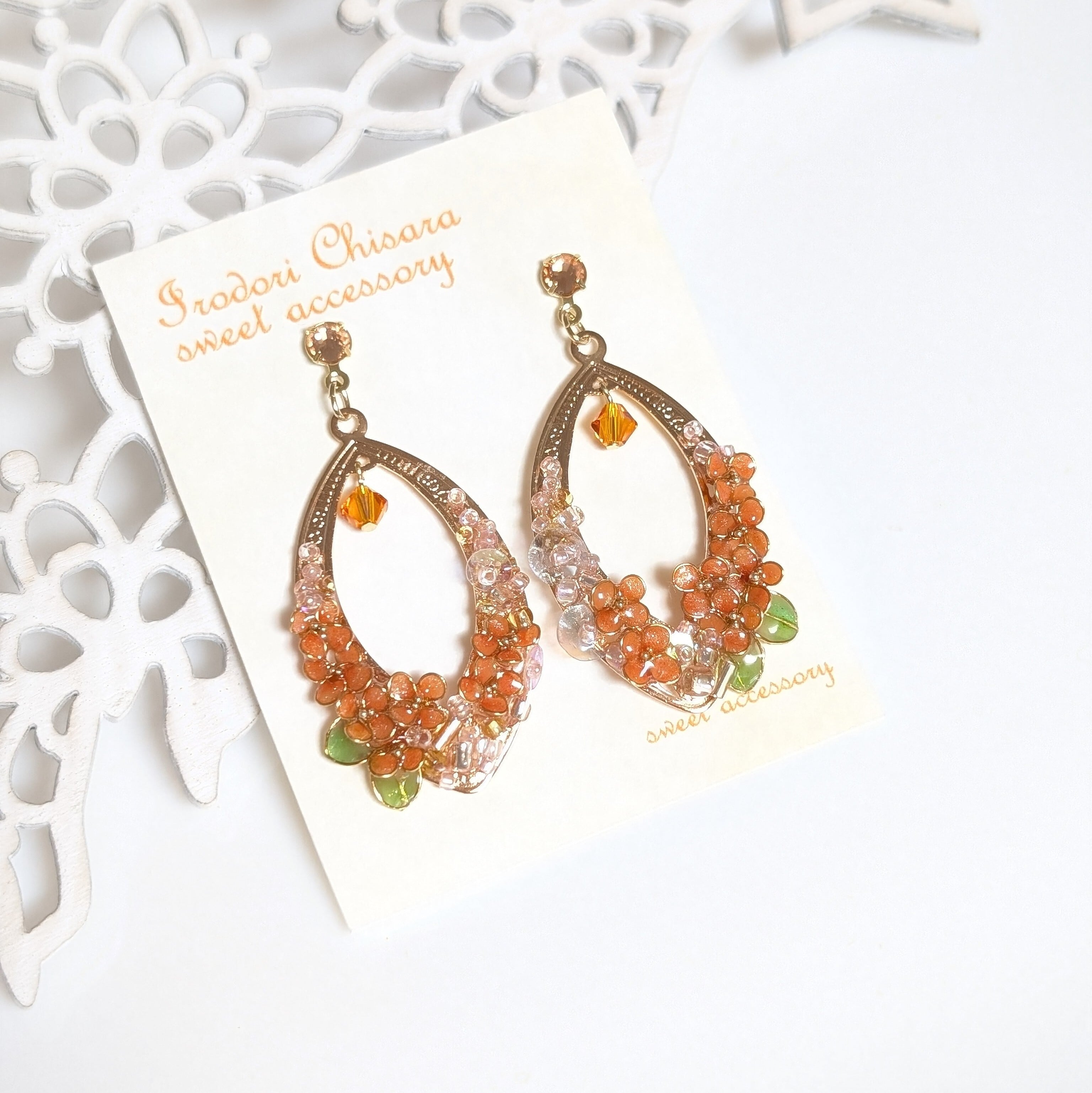 #スパンコール#金木犀#秋桜#お花のピアス#ハンドメイド#パールピンク#揺れるピアス