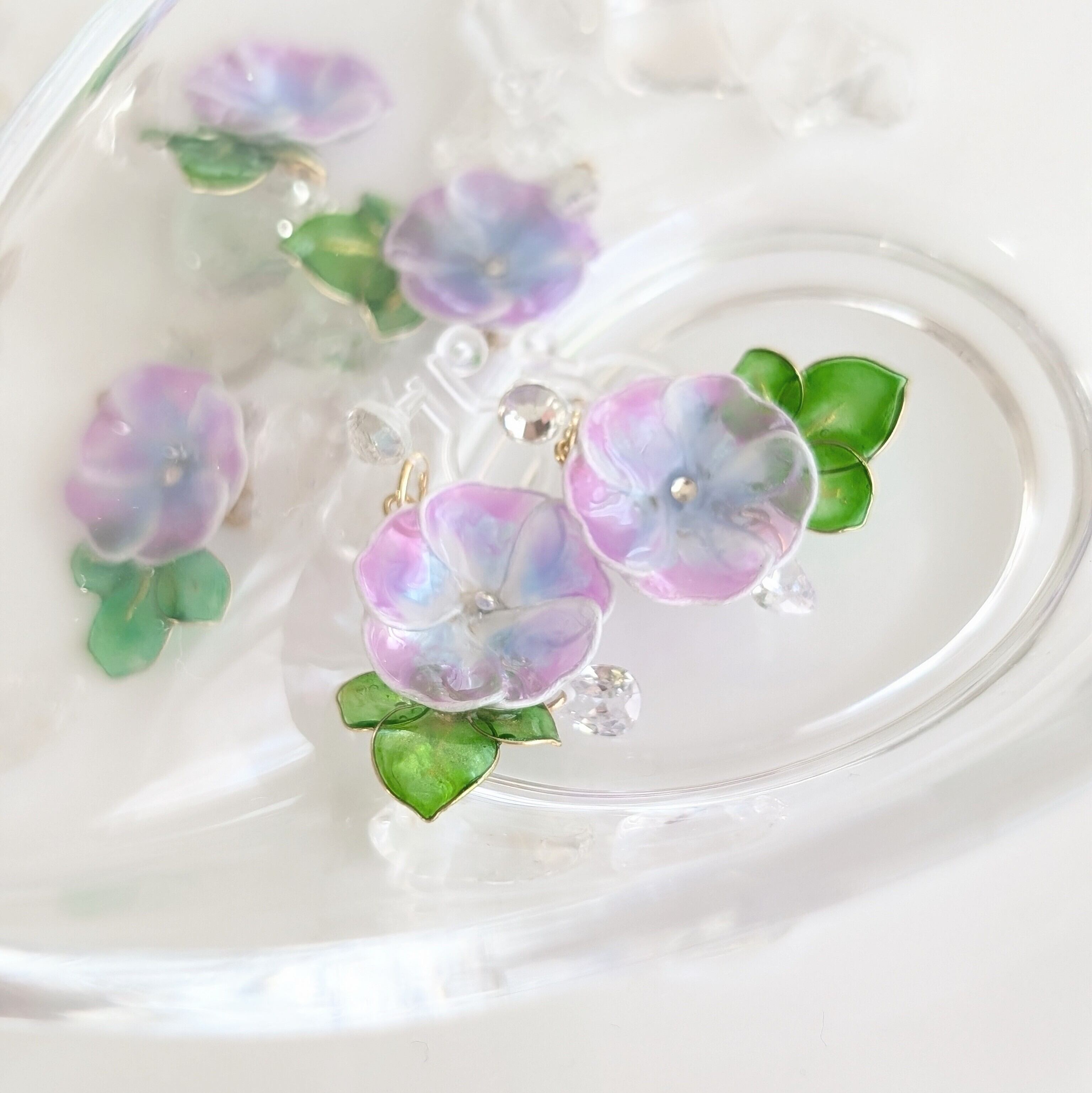 【完売いたしました❀】「夢色あさがお」揺れるノンホールピアス //パーツ変更可