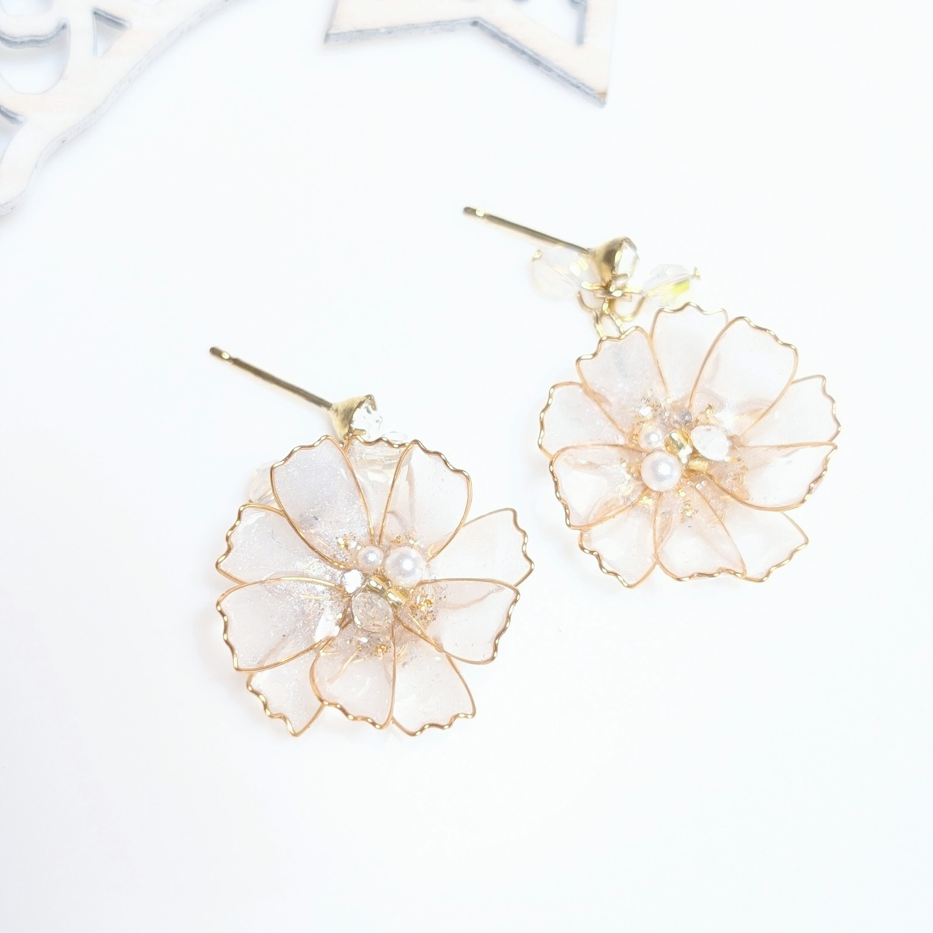 #スパンコール#金木犀#秋桜#お花のピアス#ハンドメイド#パールピンク#揺れるピアス