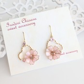 #スパンコール#金木犀#秋桜#お花のピアス#ハンドメイド#パールピンク#揺れるピアス