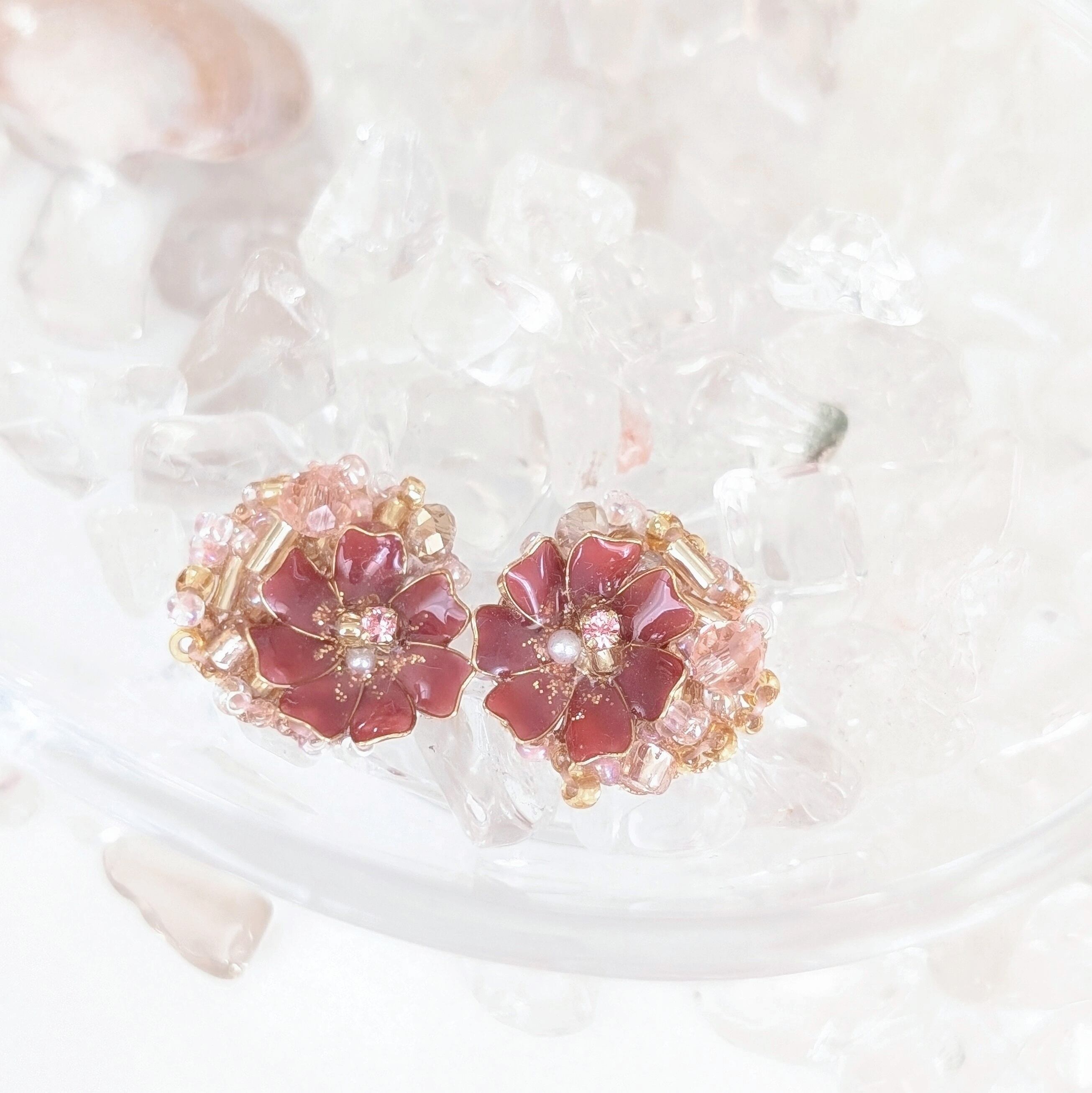 【完売いたしました】清楚で華やかな秋桜のサージカルステンレスピアス 130