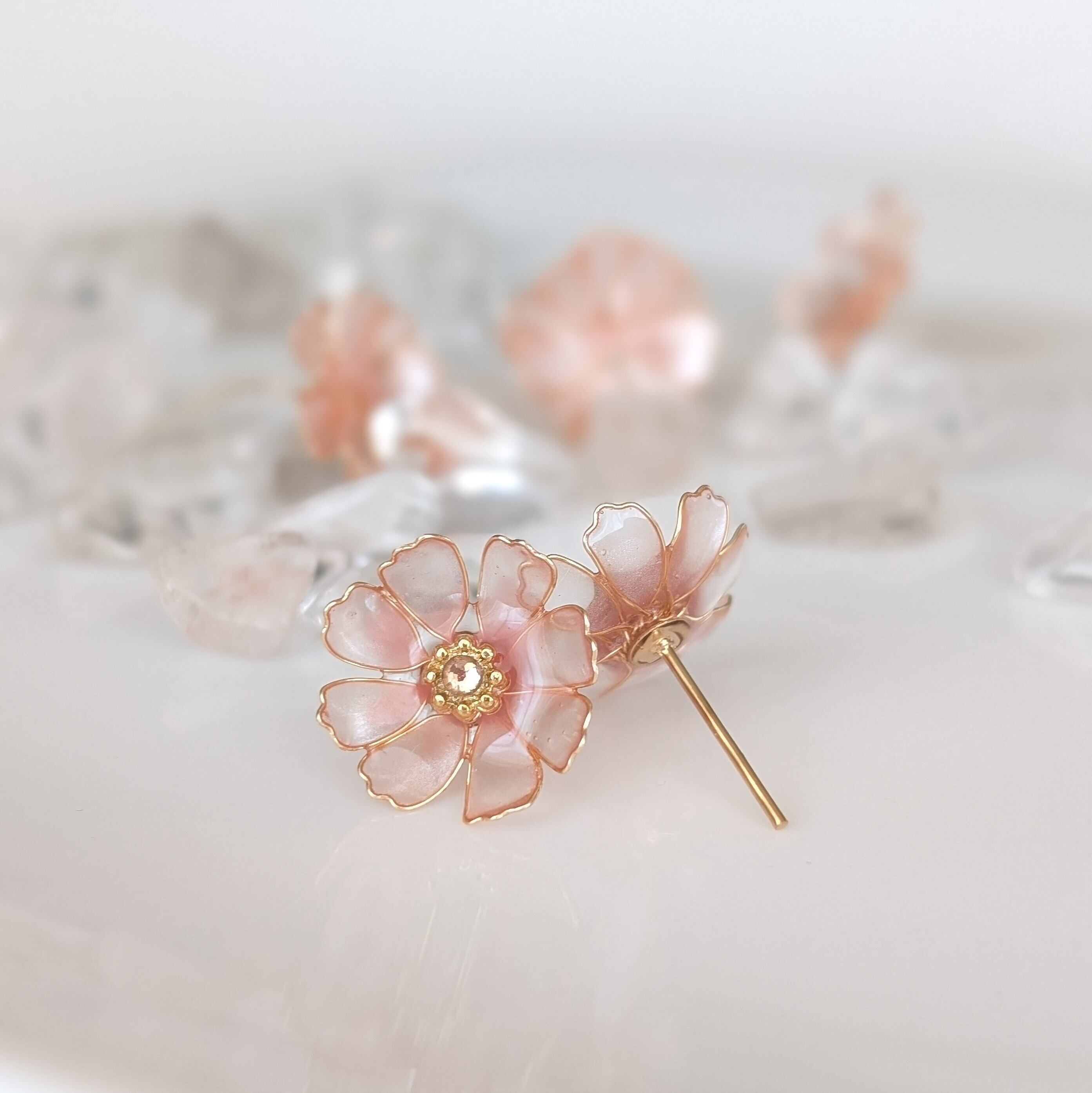 【完売いたしました】淡色コスモス【サージカルステンレスピアス】
