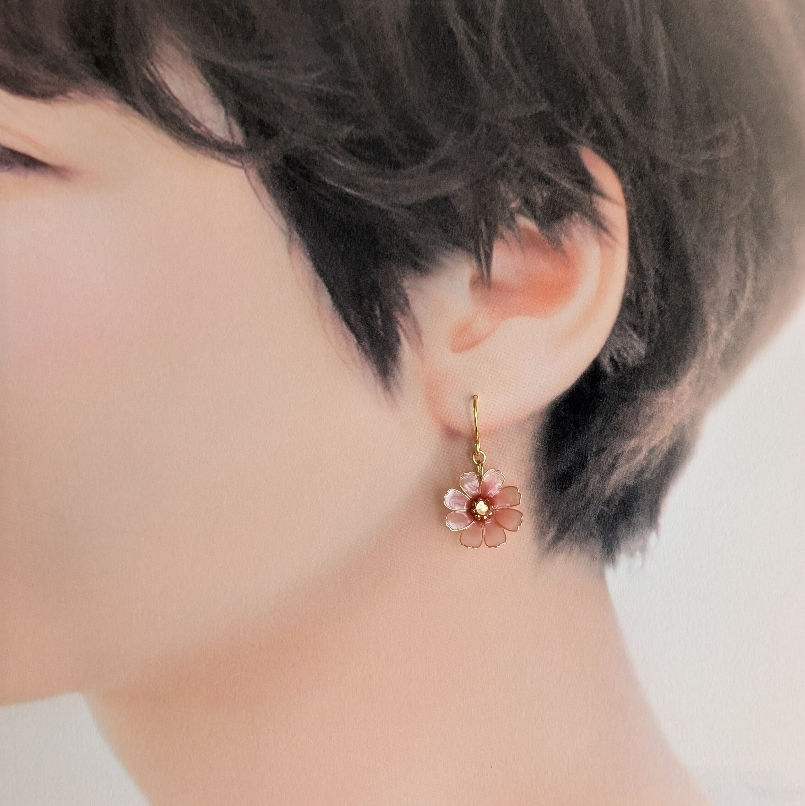 #スパンコール#金木犀#秋桜#お花のピアス#ハンドメイド#パールピンク#揺れるピアス